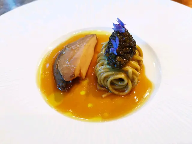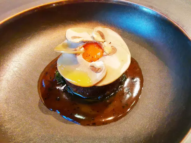 其他菜呢,食材用的不错,搭配是别的fine dining没有见过的,但是我觉得口感未必就是最最搭配的,比如那道改编“威灵顿”,切开是27头溏心鲍鱼+小牛胸腺,主厨想表达的是口感有层次,但是我觉得调味似乎一般,不是特别搭。