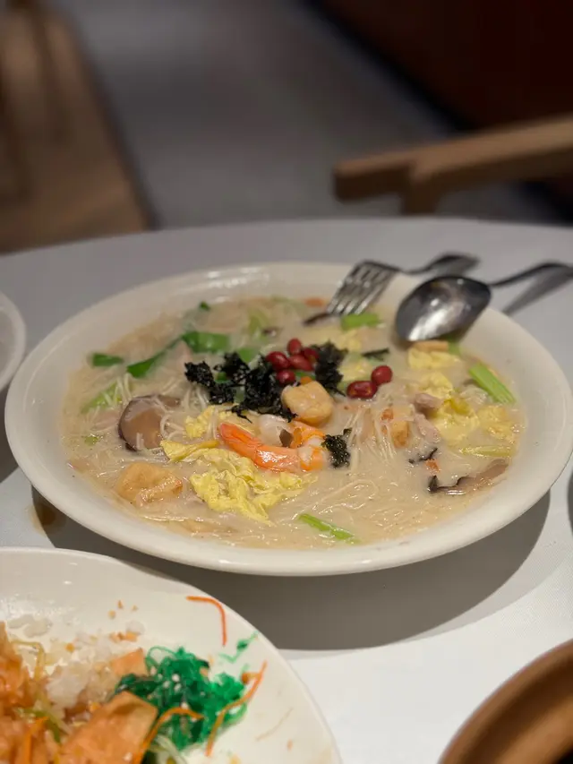 平安麵寓意平安健康長壽 麵條長長幼幼 咬落有少少煙韌 配上各種餸料 比如蝦、紫菜、炸豆腐條、花生、蟶乾 係傳統福建麵線😙