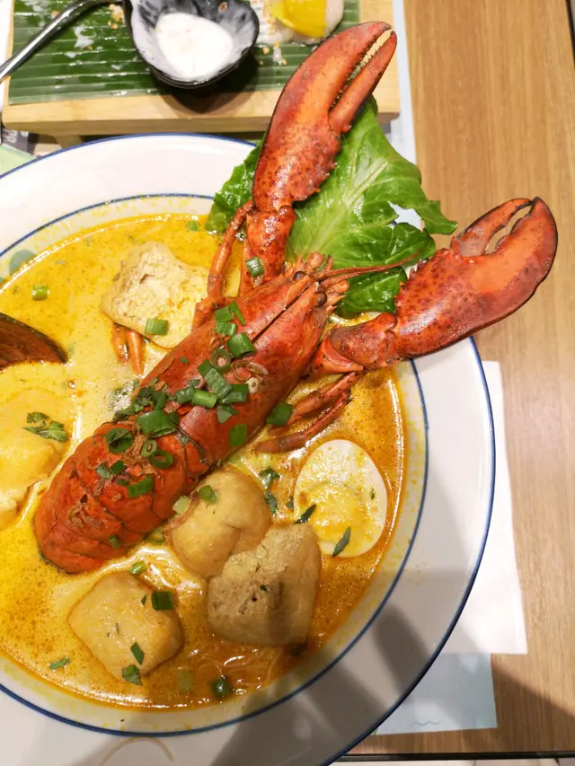 貪得意見到有88蚊龍蝦叻沙, 路過就試試啦,依間鋪頭好有趣,門口冇人帶位, 等一陣無視我後自動坐低算, 坐低無人比餐牌,算,自助,舉手叫職員佢都舉手示意,但係掉頭走架,好有型,三催四請終於有得食,龍蝦叻沙就無乜特別處理過,鹽水煮熟隻龍蝦放上面, 急凍貨,比較咸,平,算, 但個叻沙真係相當失敗,個湯頭咸到要洗腎, 幾經關卡問佢攞杯水其實都唔夠,因為真係好咸但又冇其他香味,唔辣唔香純正咸, 碗大份量少,可以不用試, 我都不會再食