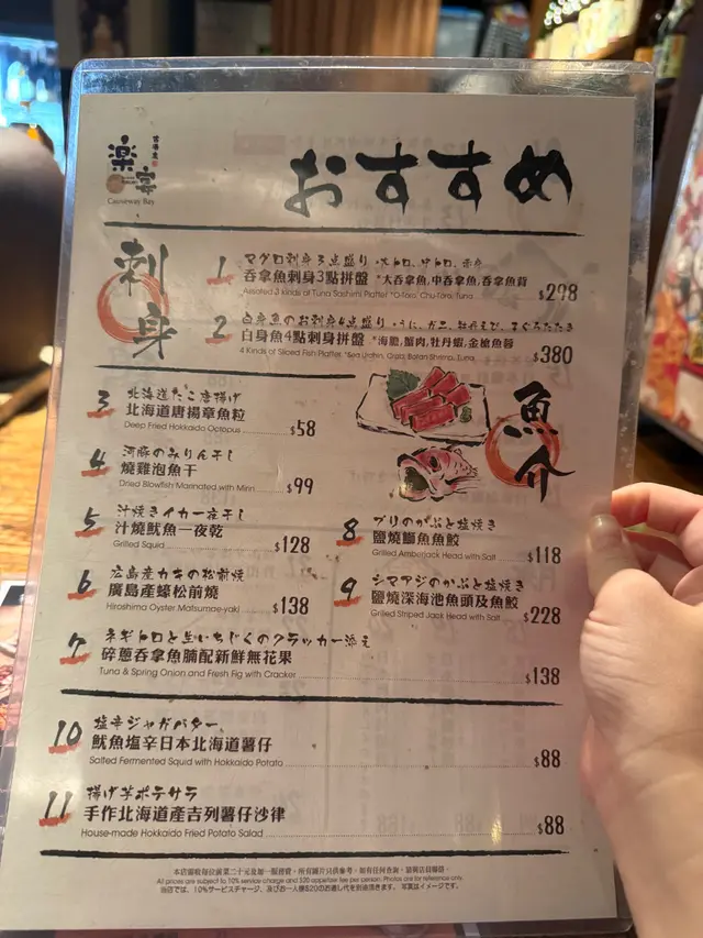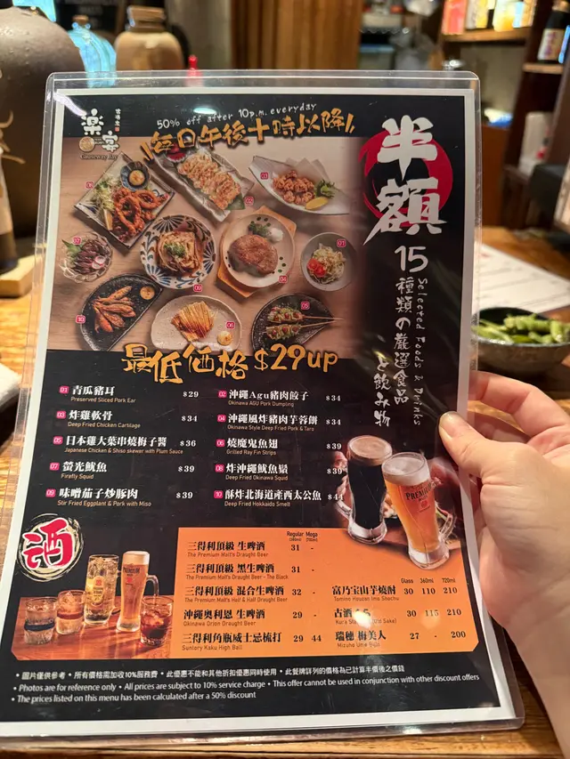 🍶 每晚10點後有深宵割引:10款指定菜式+5款酒精飲品半價