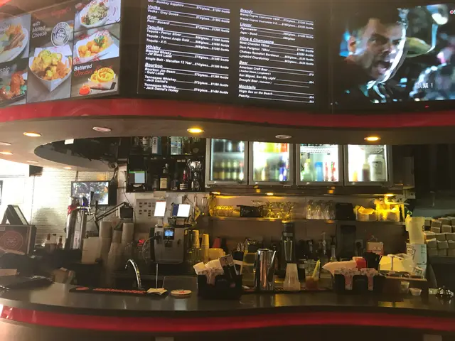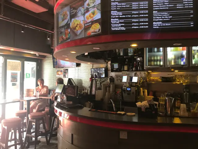 酒吧的裝潢格局,設有高枱和高櫈,