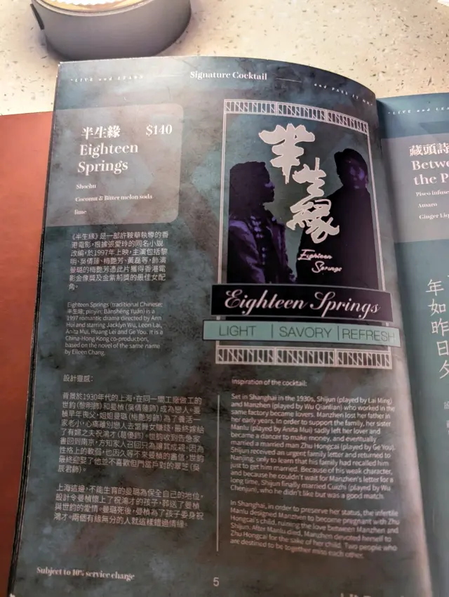 每杯cocktail都以故事或者人物作靈感設計,menu上有故事嘅簡介,呢杯叫「半生緣」。
