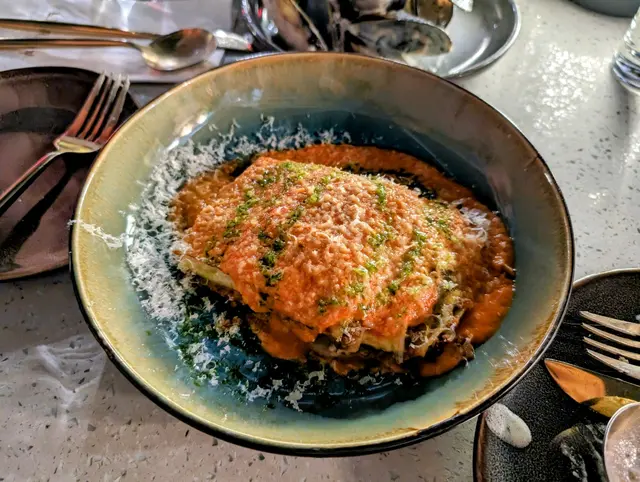 肉醬芝士千層麵,一層層麵皮夾著微酸而開胃嘅肉醬,配上大量邪惡嘅芝士碎,香濃惹味,份量雖小仍幾飽肚。