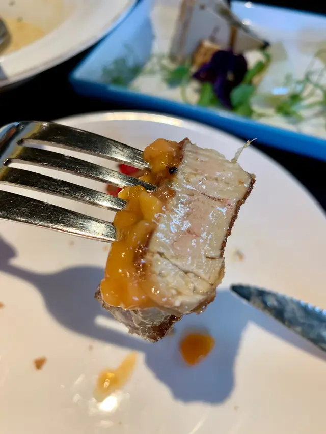 香煎鵝肝配砵酒燴梨,一上枱未食先有驚喜,擺碟精緻,除煎鵝肝外,還有鵝肝醬👍🤗!先食煎鵝肝,鵝肝夠厚度,煎得剛好,外香内軟,配芒果無花果莎莎醬。。再加另一主角燴梨,中和了鵝肝油膩增添果香!接著要試試鵝肝醬,幼滑香嫩。。口感細緻!很回味喔!