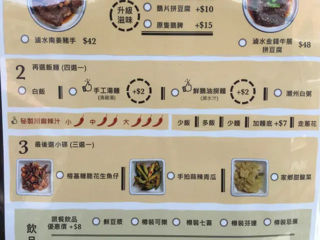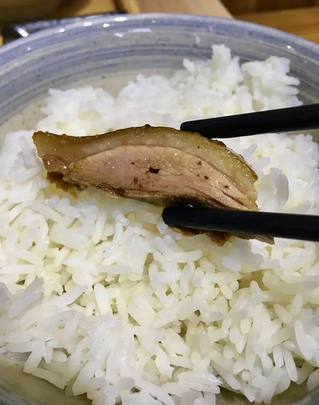 白飯份量足,略嫌冇飯香同較軟身;手工湯麵軟硬度適中,清湯入口唔口渴。老友記加麻辣醬再倒入點鵝食的醋汁,自製酸辣味。三小碟中點食魚仔同青瓜,前者得兩票,青瓜輸在冇咗爽脆口感。