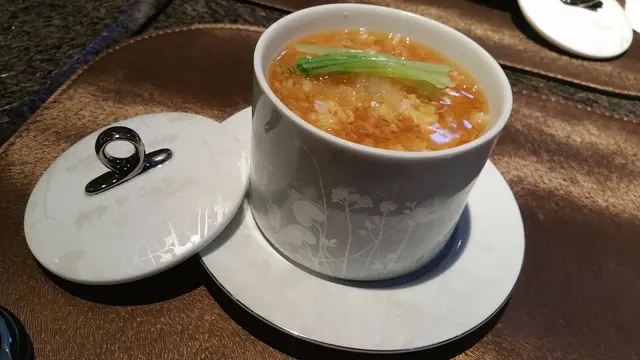 「朝飲木蘭墜露兮,夕餐秋菊之落英」,以秋菊入饌感覺新鮮,日本人對菊花有「高潔」、「請信任我」等的花語,還相當配合這餐廳的感覺呢。這天用了蜆代替帆立貝(ホタテ),不過size和肉質也不遜色。湯的感覺清新,有別於濃厚的中式湯水,口感輕盈,帶有輕微海鮮的咸香,秋菊片片順著湯碗滑入口腔,讓齒頰之間留有清新的餘韻和香氣。