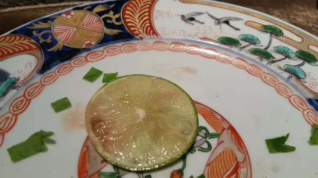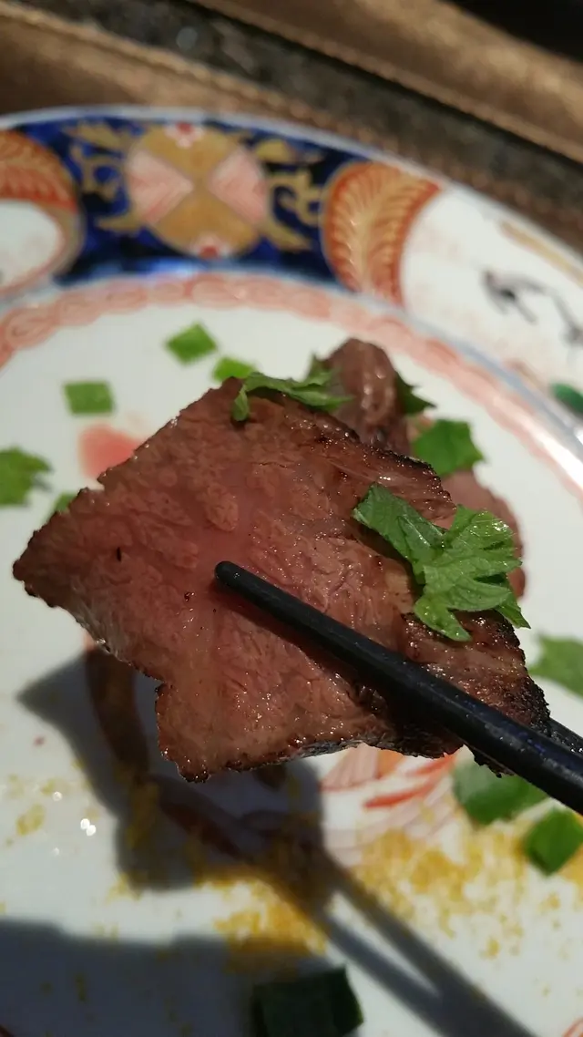 雖然不是最頂級的和牛,但這和牛味道毫不遜色,因為配搭上落足了心思。面頭的粒粒看似岩鹽,實際上是烏魚子。雌性烏魚(又稱鯔魚)的魚子取出後,以鹽醃漬,經過曝曬、陰乾而成,看上去亦黃金剔透非常美觀,猶如粒粒星塵金砂,食落鮮美無比。和牛脂質均勻,肉汁豐厚,一絲不老,再配上重中之重的烏魚子,配搭出一個鮮美新角度,而且,上田師傅還有一殺著,就是把一片青檸藏在和牛底下,既省卻擠汁的動作,亦為肉的油脂和魚子的咸鮮之間,添上一抹清新的芳香氣息,配搭實在聰明,在口中實在幸福得不能自拔,此刻已猶如碟上的仙鶴快要雲遊了。