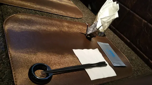 餐具擺設,有金璧輝煌的高貴感覺,還有一隻和風小鶴擺設。