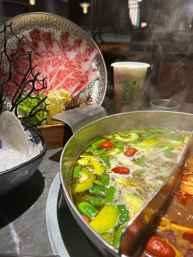 揀左青花椒牛油果同埋台式麻辣。青花椒牛油果湯底有滿滿切片牛油果同埋青椒,湯頭帶有青檸香,越熬越有椒麻感,加上幼滑綿密的牛油果,有助解辣。而麻辣湯適合冇咁食得辣嘅人~豆腐鴨血任添,好食😋