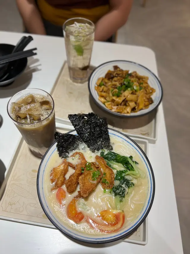 同行朋友點咗碗炸魚片米粉(Fish Bee Hoon Soup) $98