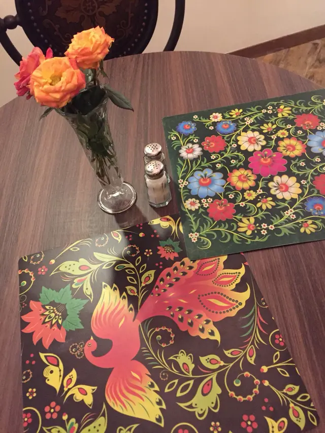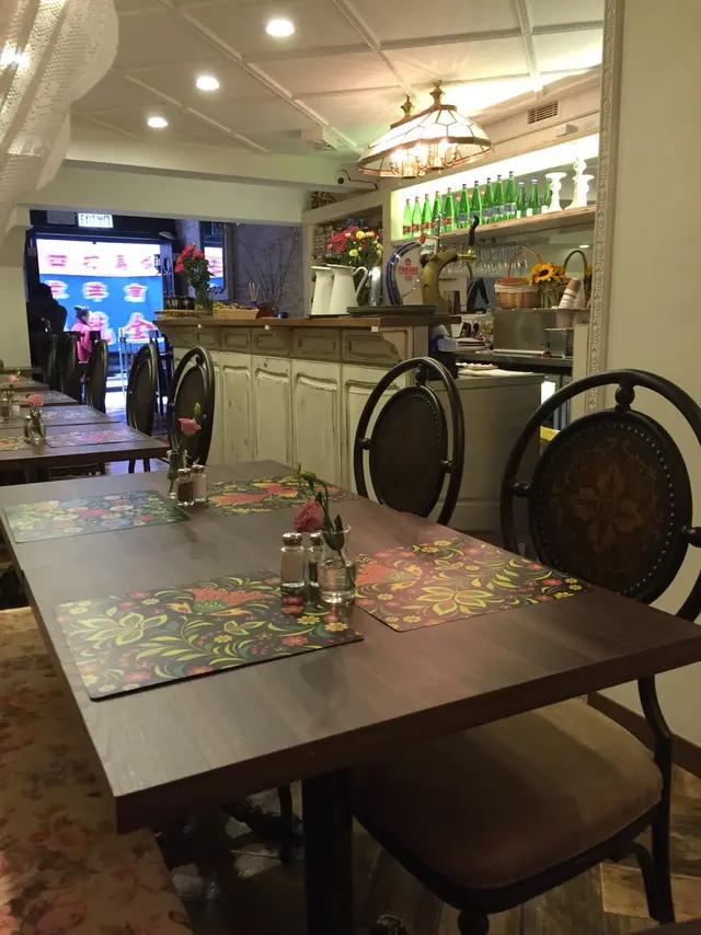 只有20多個位的小店 富有俄國特色的裝修 亦有好多家庭合照 令人有回家食飯的感覺 之後有個金髮美女 用重中歐口音的英文 介紹了menu上的各項食品 沒有太多的選擇 一版紙 因為3月頭新開張 只有lunch set menu