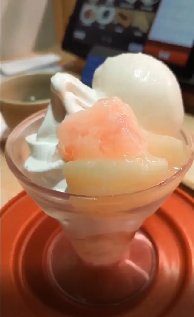 白桃味芭菲份量比想象中大d,但原來只有一小球係芭菲。上面有3件白桃仔,都幾鮮甜