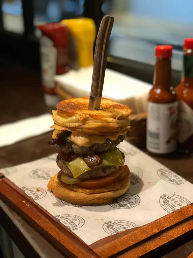 新年限定漢堡🍔 jenny.yeung.9404Level 22020-02-23930 views Follow The Gold Digger「芝」財進「堡」$118//新年限定漢堡!賣相一流😛芝士醬好香濃,果然係特製醬汁😆配料有炒蘑菇/太陽蛋/蕃茄/生菜,當然唔少得佢地既招牌乾式熟成牛肉漢堡扒😚漢堡肉味濃,一切開d肉汁流晒出黎,不過食落有d實🙃Double Happiness $180//食肉獸必叫!超大個,用把力插住好吸晴🤩兩層漢堡,加上芝士/煙肉,包入面有醬汁,所以食落比新年漢堡Juicy😚以上只有芝財進堡係配埋薯條,薯條好脆,分量足🍟其他漢堡如果配餐要另加錢喔🙂餐廳閒日會有不同優惠,有興趣可以留意下喔😉The above review is the personal opinion of a user which does not represent OpenRice's point of view.LikeShare新年限定漢堡🍔 The Butchers Club (蘭杜街) https://s.openrice.com/QrKT0gUet00Report Post Ratings2Taste3Decor2Service4Hygiene3ValueDate of Visit2020-02-04Dining MethodDine InType of MealDinner