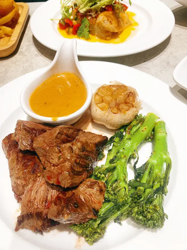 7成熟既封門柳,唔會太熟,肉味同肉質會比西冷容易入口,而且封門柳會幫你切好一粒粒,對於我地無男朋友在場既港女會更加方便食😆😆食到牛扒之餘切都唔洗切。而且沙律🥗前菜一啲都唔細分,個是日餐湯仲好好飲一啲都唔會比西餐廳差。