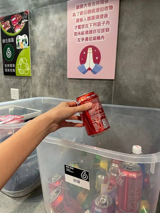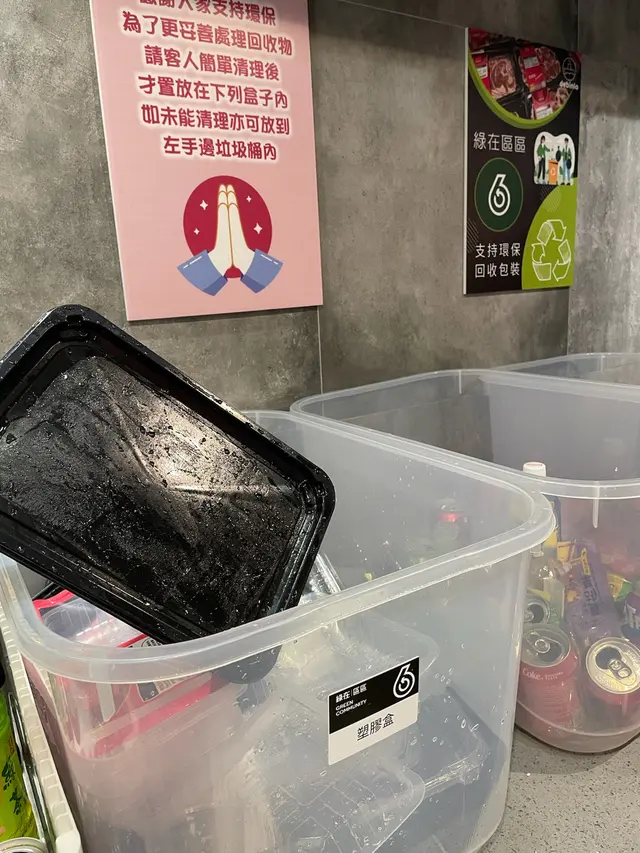 係旁邊有幾個透明箱做環保分類,我哋食完嘅盒或者飲品罐,可以喺旁邊用清水沖一沖,再作分類,非常支持環保♻️愛護地球,人人有責😙