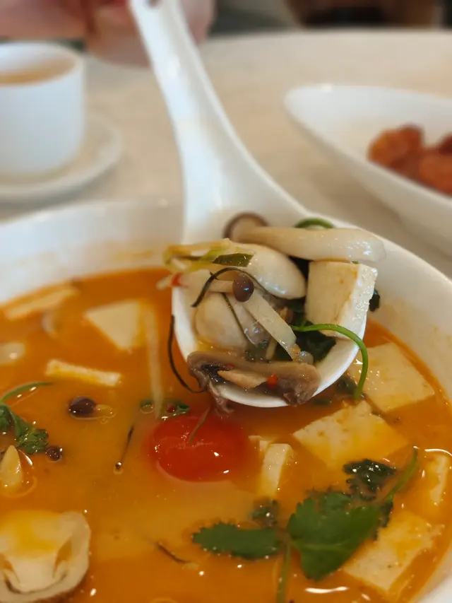 ✨素大蝦冬陰功湯 - 酸辣開胃,椰香同香茅完美帶出泰式靈魂🍲素蝦彈牙,湯底層次分明,喺素食餐廳飲到呢款湯都真係幾驚喜!