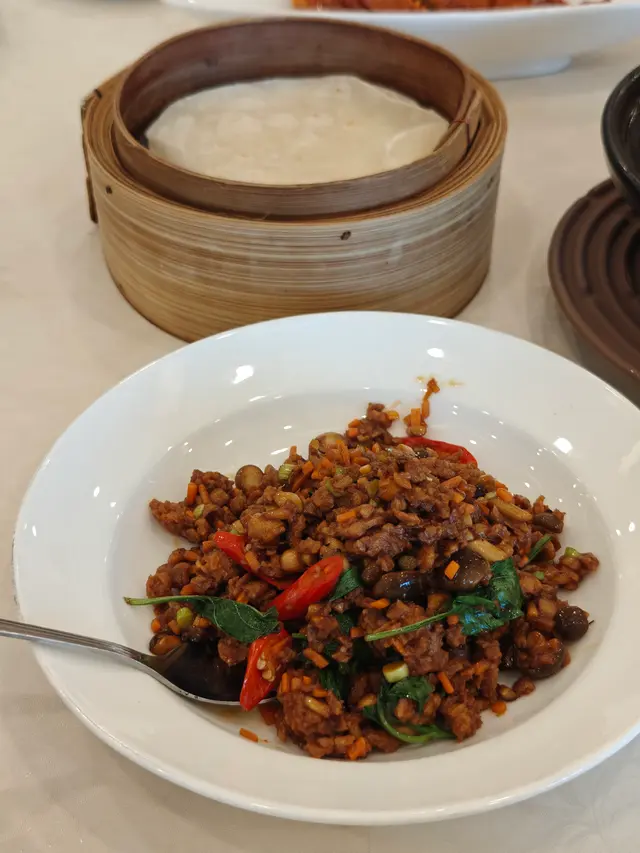 ✨雜菌素碎肉炒金不換配薄餅 - 香草金不換與菇菌素碎肉炒香撲鼻,搭配蒸春卷皮,中西合璧,層次豐富~