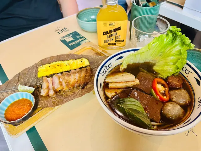 除了有鴨血,仲有牛丸、黑椒扎肉、牛腩,加上生菜、芽菜、香葉、辣椒絲及青檸等配菜,十分豐富。金邊粉有些煙靱,不會太淋,加埋濃郁湯底,足料之餘又有齊甜、酸、鮮、辣多種味道,一定要試。