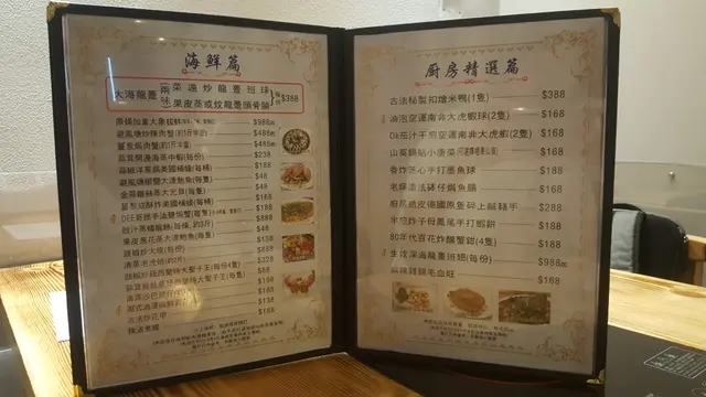菜色種類包羅萬有,海鮮、火鍋、小菜、雞煲樣樣齊,想試嘅菜都好多款,老闆仲特別介紹左個焗魚腸,可惜要訂先有得食,下次一定要再黎過