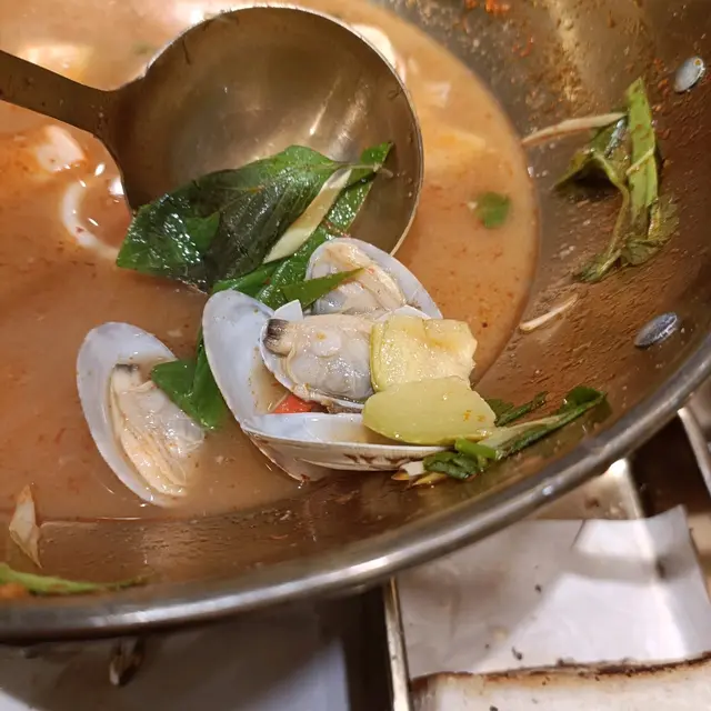 唔似平時飲開既冬陰功,好有蔬菜的清甜,原來加了好多紅蘿白和瓜等等,唔怪得似羅宋湯,好有益,值得推蔫!湯内有大蝦、蜆、青口等,我覺得口味偏辣,要叫番杯凍飲中和。