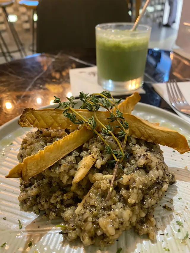 店舖坐位不算多,背景音樂輕輕鬆鬆,最終點了個意大利飯和豆乳抹茶。意大利飯有菇、薏米及小米,夠飽又健康。而豆乳抹茶,完全是我杯茶。起初以為會是比較港式的抹茶鮮奶,奶會多過茶。但原來是京都味的抹茶,茶濃帶甘,抹茶味濃郁。
