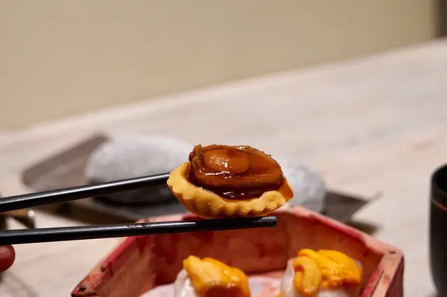 係成隻鮑魚上嘅雞粒酥,鮑魚軟腍彈牙,一咬即分開,仲有鬆脆嘅雞粒酥係底,上下兩種唔同嘅質感形成強烈嘅對比,齒頰留香