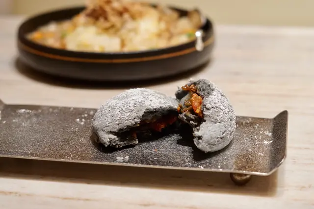 鬆軟嘅叉燒包用上竹炭粉去製成竹炭叉燒包,麵包做到微脆而軟腍,唔會好乾身,加上白色麵粉灑係麵包上面,外形真係好似用黎收藏嘅石頭咁,好酷!