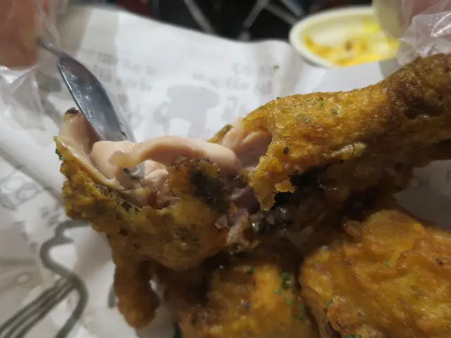 我地今餐只係當小食咁食,所以點到唔多。首先係原味韓式炸雞(半份$78),一上菜已經聞到陣陣香味,戴上手套後一掂,辣到我地即刻縮身,證明真係即叫即炸,非常夠時間。半份雞有四件,每件都係唔同部位,肉質嫩滑,非常香甜,仲有兩款醬料點,將味道升華。