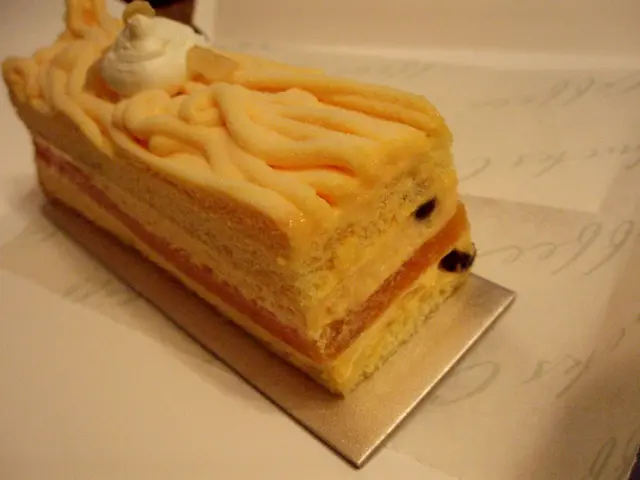 , 蛋糕--mousse--啫喱--mousse--蛋糕--mousse。 香橙白朱古力mousse夠軟滑, 橙味甚為突出, 酸中帶甜, 隱約中吃到橙皮的澀味, 奶味很香但未必分辨到就是白朱古力, 略嫌mousse質地較軟又太薄, 像忌廉一樣, 我偏好厚些和挺身一點。混入了朱古力粒, 不脆之餘反覺韌, 帶苦:(, 破壞了原有的味道。 啫喱彈彈的, 橙味很清新:)。雖然味道非如所料般那樣好, 但已算很不錯, 相信還是會陸續試勻其他口味的。