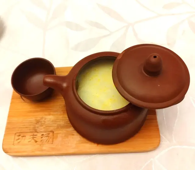 首先賣相非常特別,紫沙茶壺內载著的是燉湯,火喉足夠, 奶白色嘅燉湯, 香噴噴嘅杏仁 加上豐富材料,好好味,有豬肺,杏仁,雞腳 ,瘦肉等, 好飲又好食👍👍😋😋