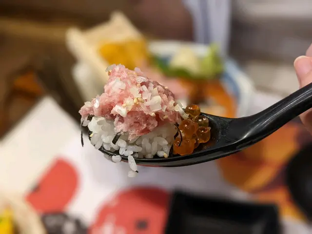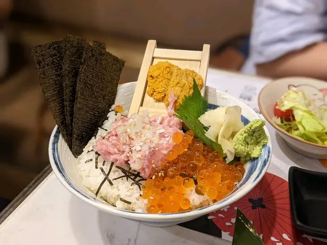 呢個丼飯好豐富,有新鮮嘅海膽、三文魚籽、吞拿魚蓉,珍珠飯同魚肉食落去好滑好鮮美,海膽充滿鮮甜甜味,三文魚籽爆炸嘅口感好好,食完係超滿足!🤤