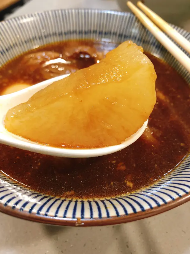 豬腸有少少肥而不膩,沒有異味,份量頗多。響鈴卷也ok,不是很油膩那種。蘿蔔可能是隨淨餸附上,都算入味、無渣,不是太腍