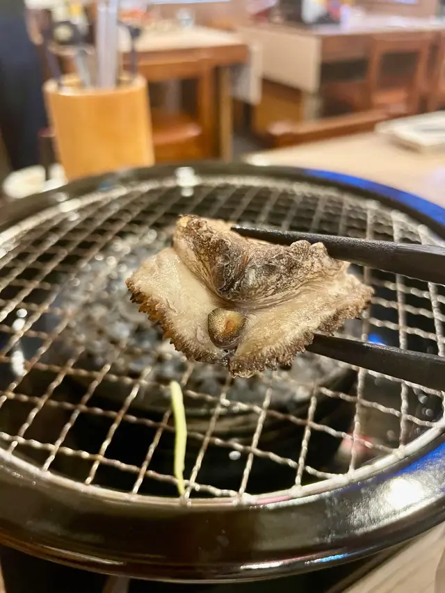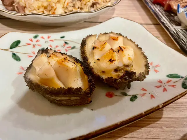 首先,我要提到焱丸水產的新鮮水產。第一次看到他們將生鮑魚放在炭火上烤時,我感到有些驚訝,但同時也覺得這樣的方式有點殘忍。然而,我了解到他們的海鮮都是當天從日本運來的,所以新鮮度非常高。