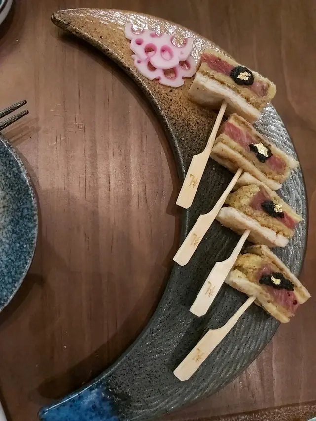 呢份真係重頭戲啦~ 黑松露配和牛。雖然只得4件,但每一件都真材實料,厚厚和牛,肉質靚,煮得岩岩好。食每一啖都有層次感~