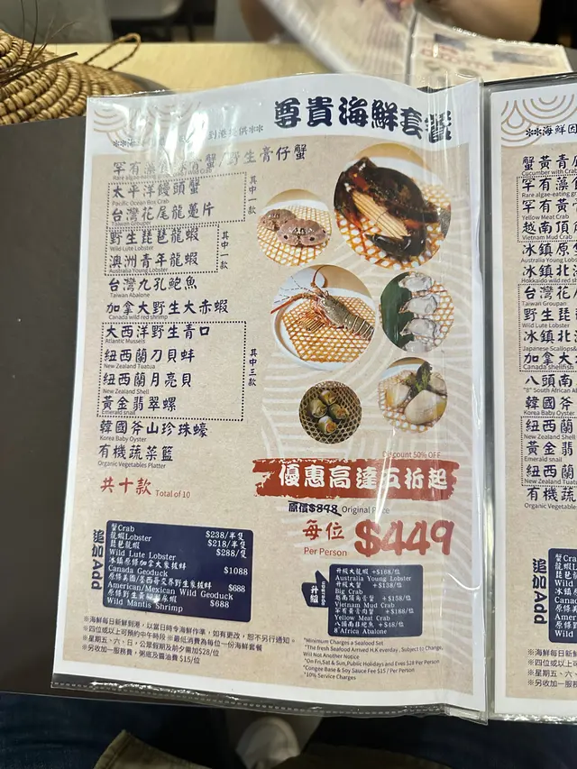 Menu 有好多選擇,最後選擇左尊貴海鮮套餐,每位$449