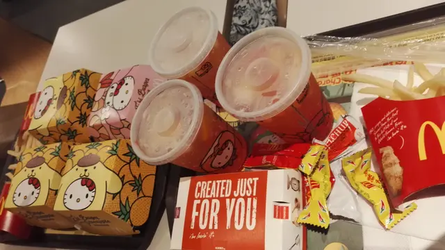 麥當勞的蝦堡, 在我印象中之前每年都不定期推出, 這次是HELLO KITTY的主題, 所以被吸引了。