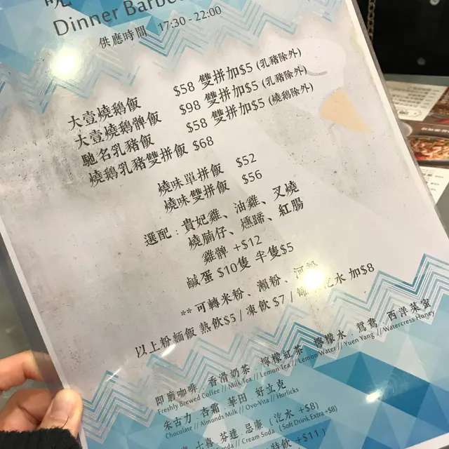 今晚兩個人落樓下食晚餐,嚟到大壹燒鵝。之前聽朋友話,燒鵝同燒腩仔都新鮮出爐,一行到去都見到有街坊等緊位,好彩等一陣就到我哋啦~我哋叫咗燒鵝叉燒瀨粉、香煎墨魚餅同銅盤焗蜆。本身想試埋燒腩仔架,但喺師傅話燒緊要等下,唯有下次先食啦~