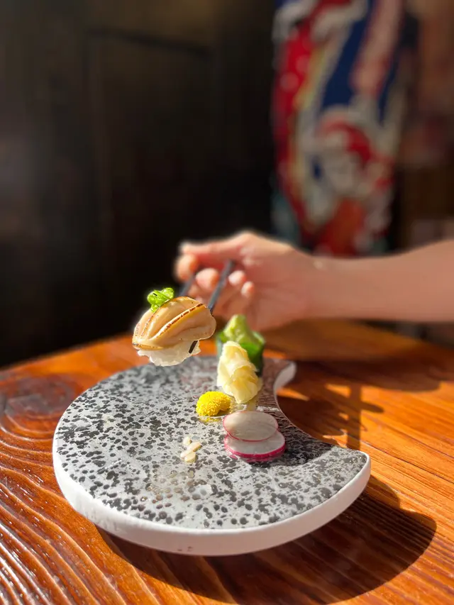 活北寄貝浜燒後用昆布湯汁盛著,完全品嚐到海水嘅鮮味,肉質爽口彈牙。