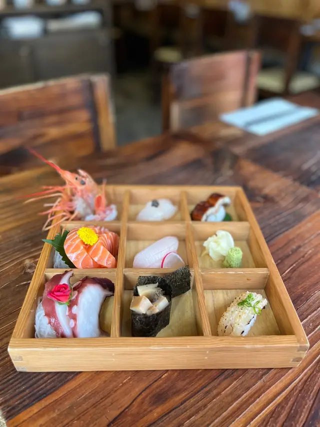 首先是「磯野壽司盛盒」,壽司種類多樣化,包括有赤蝦、八爪魚、磯煮鮑魚、黑松露帶子、三文魚、油甘魚、鰻魚、火炙左口魚。魚肉十分新鮮嫩滑。