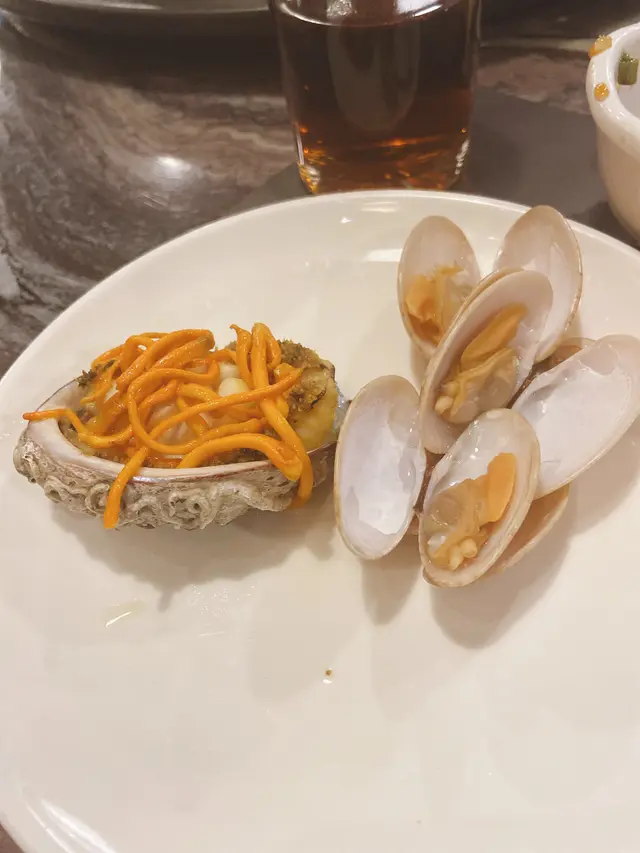 沙包蜆超級鮮甜,吃得時候一定要這個連殼拿起來,然後將肉和湯汁一齊吸進口裡。完全不會有沙,而且清蒸能帶出它的鮮味。鮑魚比想像中大塊,沒有切成小件所以可以一口把整個鮑魚吃進去,很滿足。