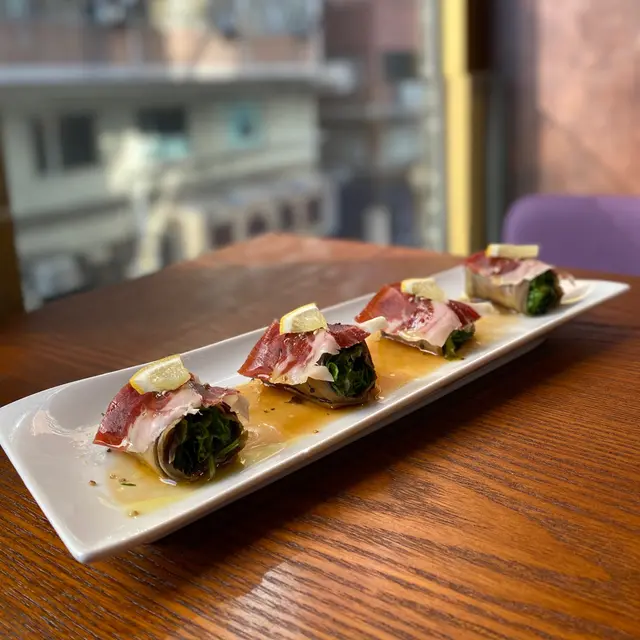 西班牙黑毛豬火腿及柚子蜜茄子卷配日本柚子醋汁 $68
