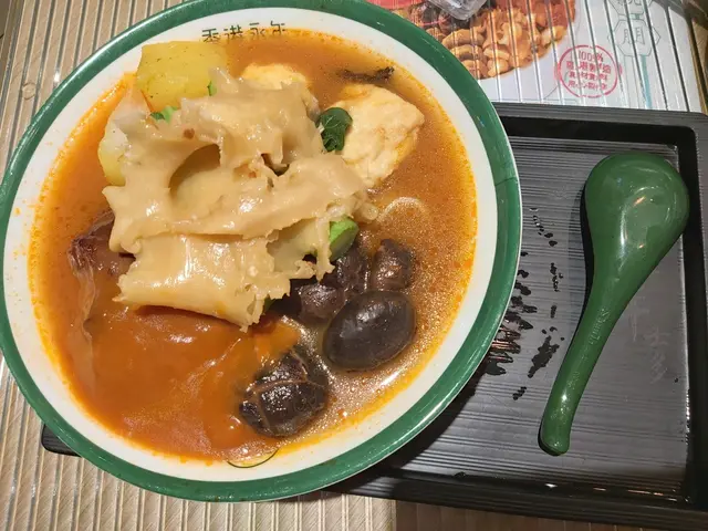 女神麵嘅材料好豐富,有養顏嘅花膠、同樣充滿骨膠原嘅豬手、口感一層層好得意嘅枝竹球、燜到好腍好入味嘅冬菇、大量紫菜、菜心同充滿咖哩味嘅蘿蔔🤤 我哋揀左蕃茄湯底配河粉,個湯係稠身嘅,甜甜哋,每一條河粉都被湯汁包圍住,好飽肚😋