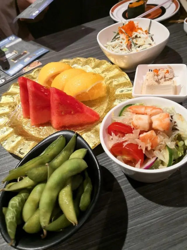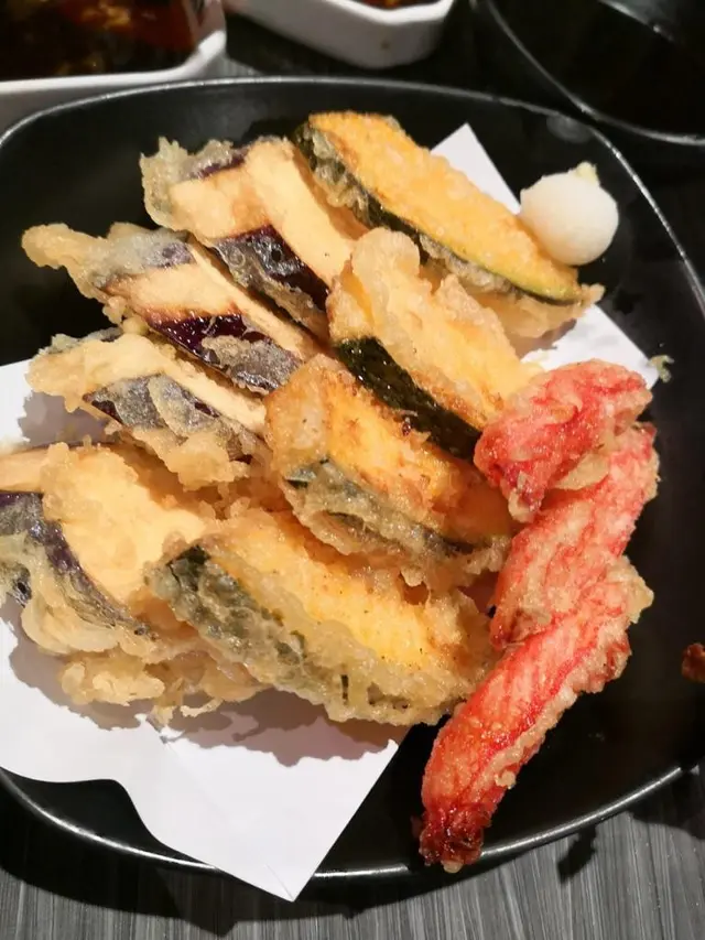 炸物竟然有炸貓山王, 只要咬一口, 即從入面傳出一陣陣香濃的榴槤味, 真的很正! 還有芝士年糕咬感煙煙韌韌中帶點鬆軟; 天婦羅中的日本蟹棒、温室南瓜及有機茄子, 全部吃下都不覺膩口。吃得有點飽飽地, 見有柚子大蝦沙律吃即可感覺到清甜開胃。