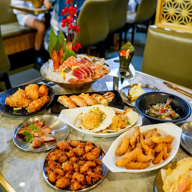 星期五晚等埋朋友收工就開餐,HAPPY FRIDAY😎呢間係平時比較少見嘅日泰放題餐廳,晚市放題任飲任食2個鐘每位$269,想更加奢華D,每位加$148仲可以任食極品海鮮拼盤,海膽帶子同任飲生啤😍