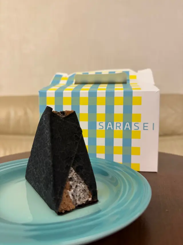 以御飯團為靈感創作,用法式薄餅和鬆軟蛋糕呈現紫菜和米飯的樣子,外形可愛,以假亂真。
