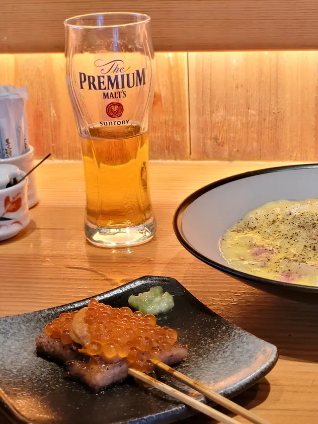 見到其他人叫和牛海膽配魚子,覺得好吸引,即刻追加。雖然餐廳主打雞,但和牛都燒得好出色,不過今次師傅有點重手。