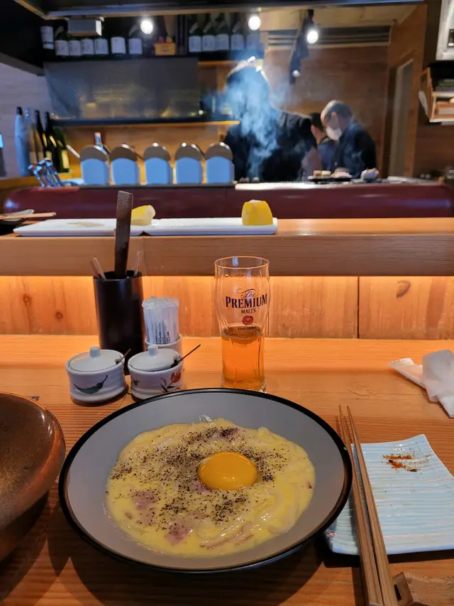 西餐的 Carbonnara食得多,日式的又試過未?見到餐牌有,又點黎試下。有中日合璧的感覺,將意粉轉做烏冬。日式的湯烏冬,講求的不再是Al dente,而是比較接近讚岐烏冬的口感。芡汁比西式的來得多,但又未至於日式湯烏冬,最重要是烏冬能夠掛住個醬汁。 特別得嚟又好味。