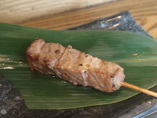 串揚店就唔好嗌非串揚類嘅野,燒牛肉比較普通。職員好細心,見我地食到差唔多先上炸富士萍果,剛上碟時咬開萍果還在冒煙,表面加左肉桂,萍果甜,熟左唔係咁爽口,感覺都幾特別。