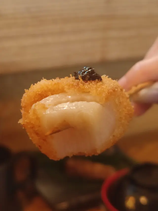 海鮮串揚定食$188(蠔,黑松露帶子,海老,魚,三文魚)各款海鮮都自帶本身嘅味道,黑松露帶子十分厚切,外表炸完但入面亦保持刺身質感。蠔唔會縮哂水,外層粉脆入面就啖啖蠔味,不俗。三文魚大舊但比較干身,其他都是正常發揮。