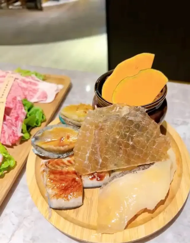 另外佢仲有鮑魚啦,比目魚,雞泡魚乾,同埋牛肋肉,呢啲都係一嚟嘅時候就會上齊晒先嘅,我個人就好鍾意嗰個比目魚真係好滑,牛肋肉呢可能係因為我哋真係唔太識燒啦,所以都燒得有啲失敗🥲唔太食到,好可惜。